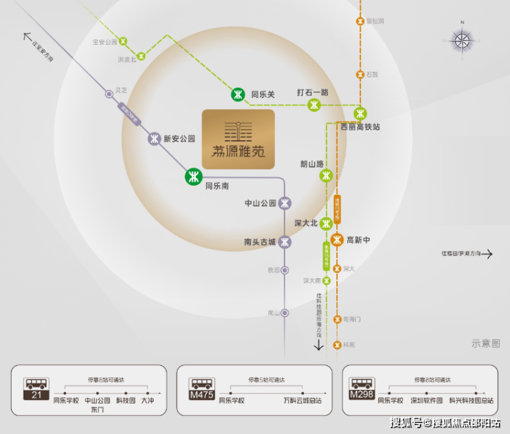 15号线(建设中)同乐关站(直线约1.5km),2站到西丽高铁站,贯穿前海、后海、南山、宝安等重要片区,环经济发展核心区域。