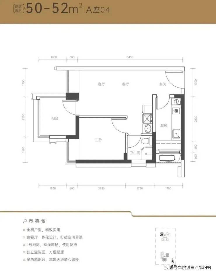 全明户型,精致实用;客餐厅一体化设计,打破空间界限;L形厨房,动线流畅,使用便捷;独立盥洗区,方便起居;多功能阳台,志趣天地随心切换。