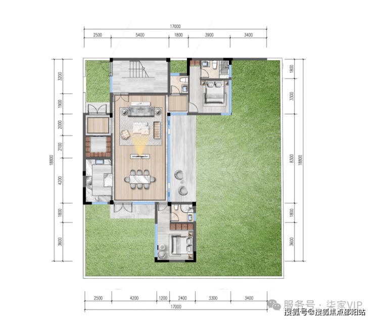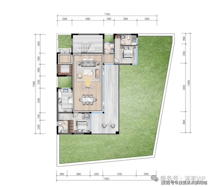 地上双层设计,首层连接庭院,打造可私宴、可会客的多功能场域;二层为主卧套房、衣帽间与星空露台,兼顾动静分区、私密性与尊荣感。