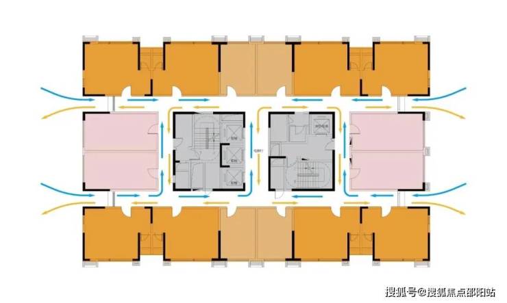 摒弃传统单过道,采用双环通走廊,极大提升通风采光