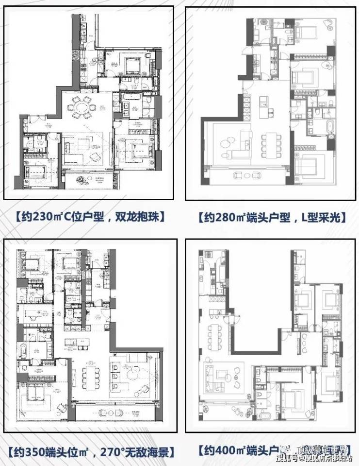 ②3.6米奢阔层高,约230-700㎡纯大户,户户面海,带大景观阳台。
