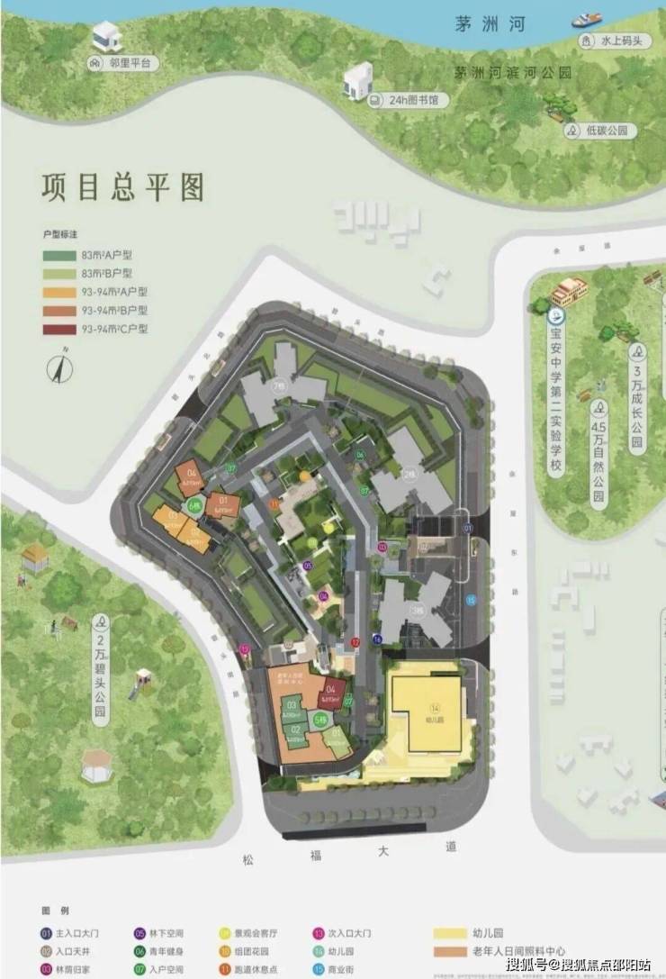 北侧紧邻茅洲河,未来有河岸景观。周边还有松岗公园等,日常休闲够用。