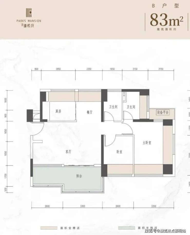 83㎡的3房2厅2卫横厅尺寸设计采光朝向都不错,这个户型可以隔成4房,很恐怖