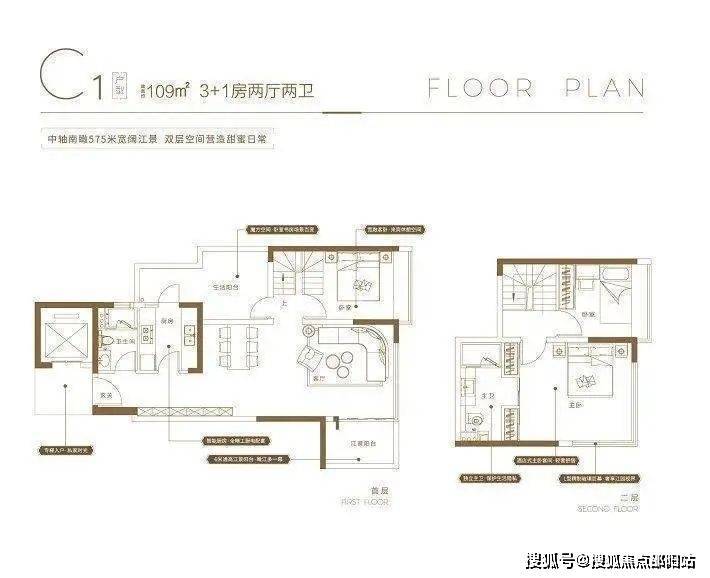 全南向设计,墅区里洋房:建面约81-125㎡聆江高层 ,约0.24窗地比,“坪庭”景观阳台。建面约143-195㎡滨江城墅