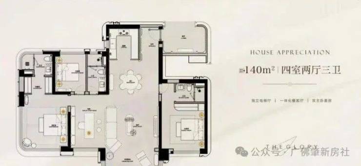 阳台占比25%,仅次于阳台占比30%的保利南方面粉厂,是天河唯二的超新规地块。虽然紧邻珠江新城,但终究偏离了核心区域,外部采用大量玻璃幕墙+冠顶设计,融合古建筑与现代化审美,顶奢石材搭建的高端会所,330米中轴庭院和云端空中花园等公区设计立体。