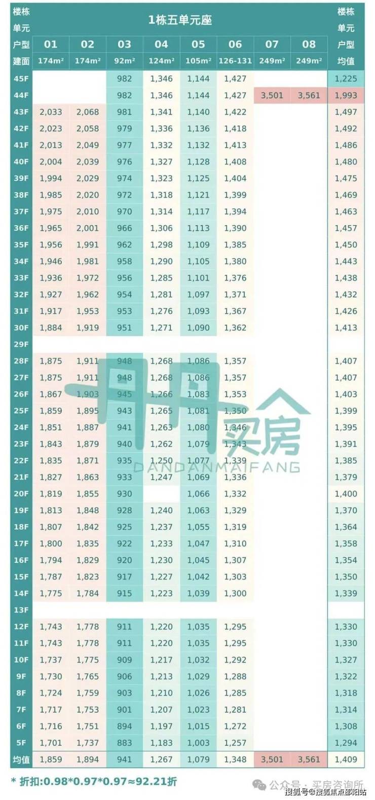 首推一期1栋5单元(45层),91-173㎡3-4房,共232套,以122-175平米4房为主,占比83%,还有两套257平顶复产品