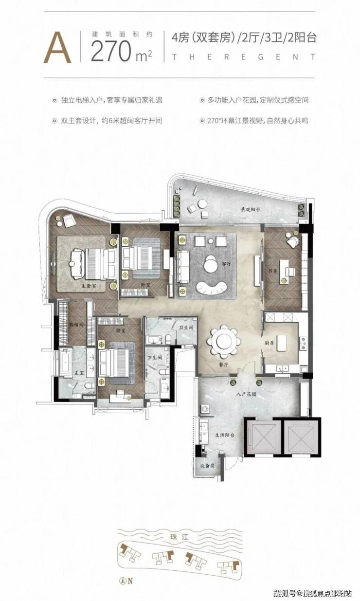 项目总占地800亩(约53万㎡),仅为千户所有,容积率约1的低密奢阔墅区。拥有三江汇聚的甄稀景观,是全城难得享受双向江景的豪宅,饱览城市中央独特的江畔景致。