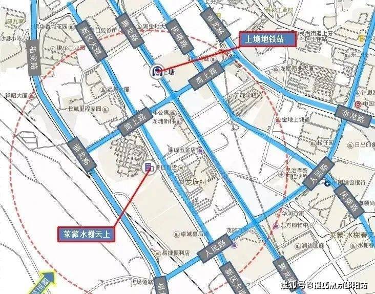 项目位于红山及上塘片区交界处,地块属于上塘。项目西、西南、西北侧以自然山体及水库景观为主,其它方向相临近的是上塘片区和红山片区。