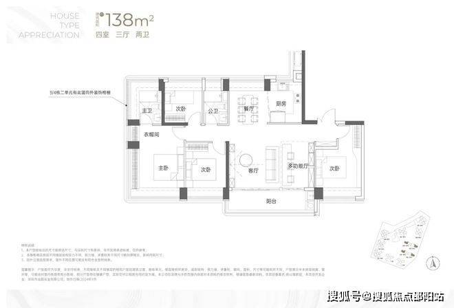 建面约138㎡4房2卫