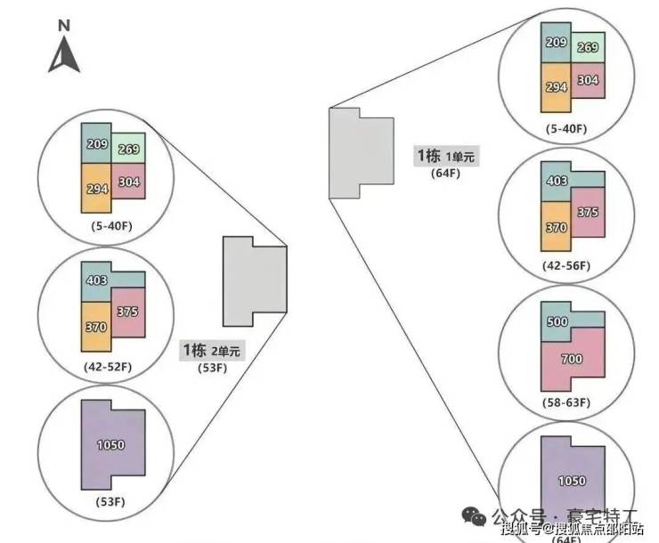 首推北区1栋、2栋,共约348套,分高低区设计: