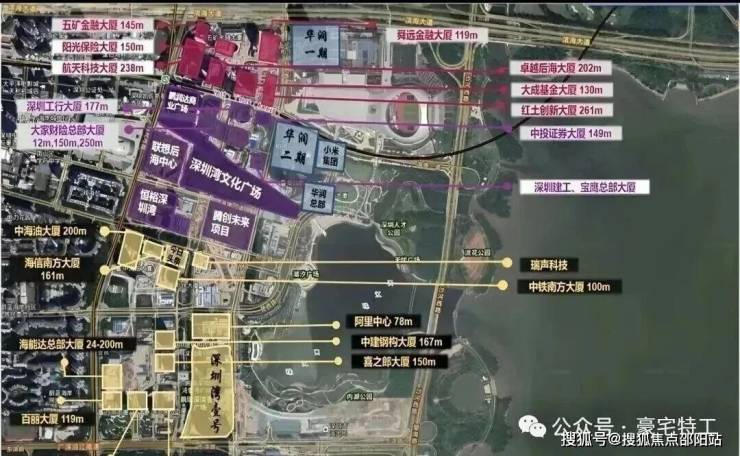 深圳湾核心产业区汇聚了阿里、腾讯等巨头,周边有中铁南方总部大厦、中建科工大厦、喜之郎大厦、华强方特大厦、中海油大厦等总部大厦,产业成熟度超深超总。