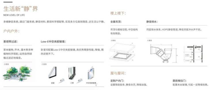 多维静音系统,通过门窗系统、静音材料、景观科学搭配等,实现多方位高效隔音,还生活以宁静