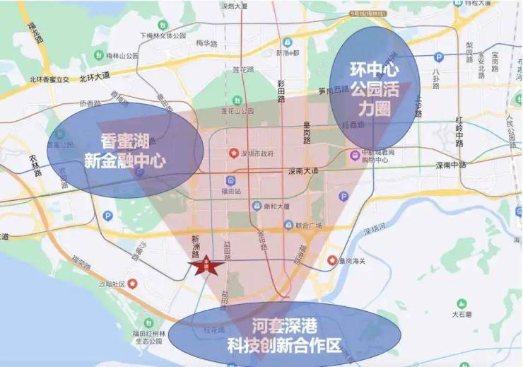 最新“十四五”规划中,福田定位湾区总部经济核心区,并聚焦河套深港科技创新合作区、香蜜湖新金融中心、环中心公园活力圈“三大新引擎”,项目位于三大引擎的三角地带核心位置,坐拥众多规划和资源。