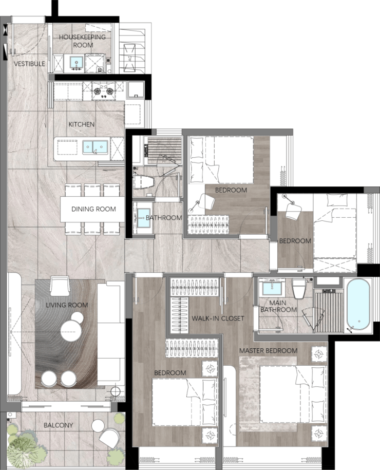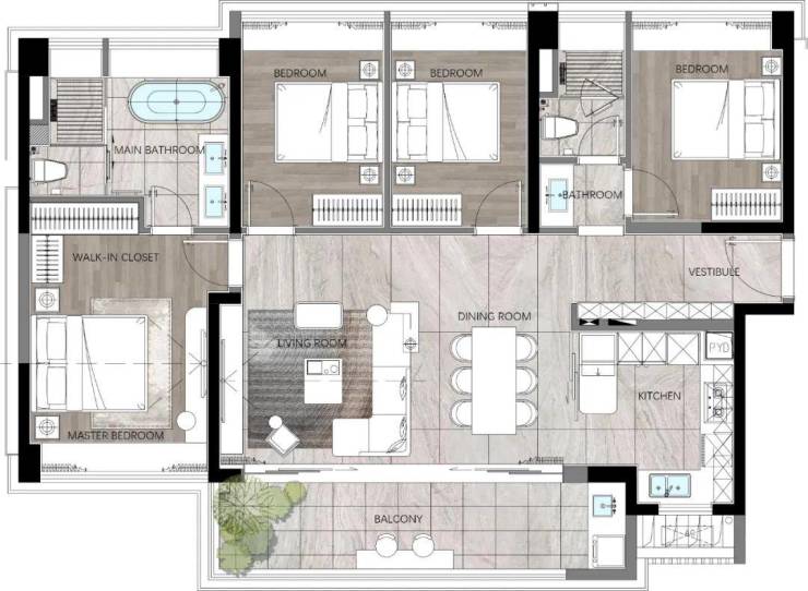 建面约140m² | 四室两厅两卫(横向)