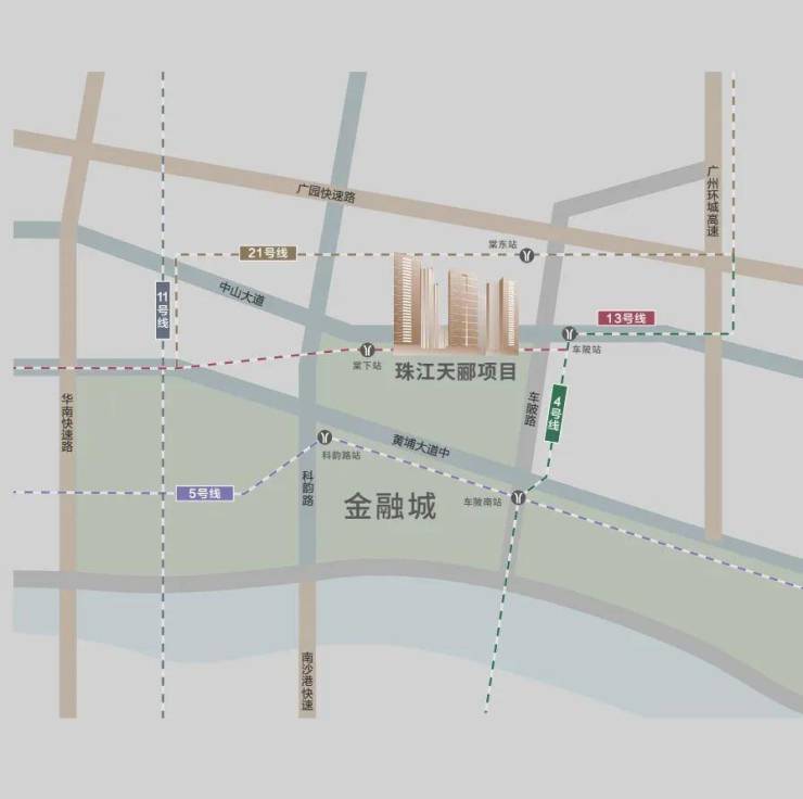 项目私家连廊直通地铁13号线二期棠下站(预计2023年底通车,地铁联通口已预留,最终以政府部门规划为标准),10分钟抵达金融城交通枢纽,并以3+4+5超级交通枢纽,构建1小时湾区资本圈!