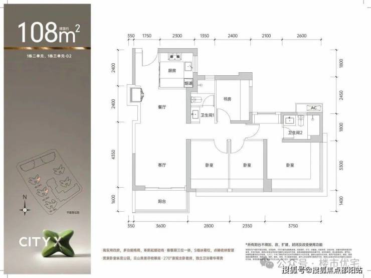 建面约108㎡4房2卫,是陪伴三代同堂/多孩家庭成长的户型。