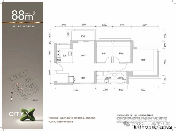 建面约88㎡3房2卫,折后总价336万起,最低首付约51万,对于预算有限又想买三房的刚需家庭而言,是很好的上车机会。