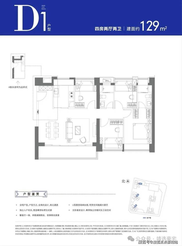 可售户型:103㎡三房两厅两卫、129㎡四房两厅两卫