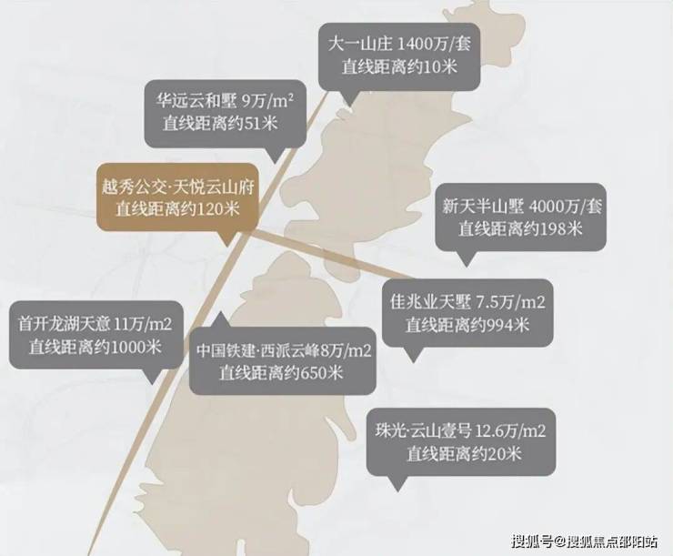 白云山汇聚大一山庄、首开龙湖天奕、珠光·云山壹号等众多10+万/㎡的一线云山豪宅。