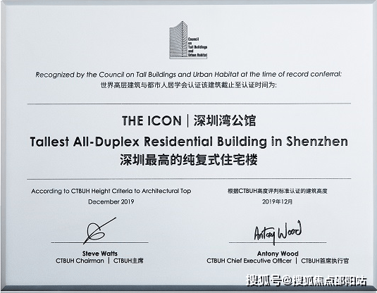 深圳湾公馆荣膺【深圳最高纯复式住宅】——国际权威机构CTBUH认证