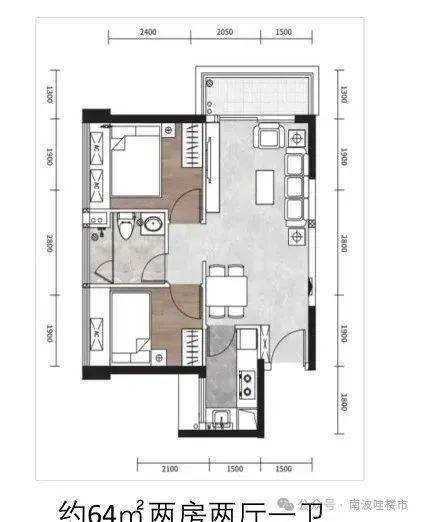 4㎡的2房2厅1卫,设计的竖厅格局,进门玄关,客厅3.3米开间,客餐厅一体化,L型厨房,卫生间干湿分离,得房率约73%(包含赠送),仅有几套可售。此户型集中在1B栋,这一栋里面有很多是回迁房,所以可售的不多。