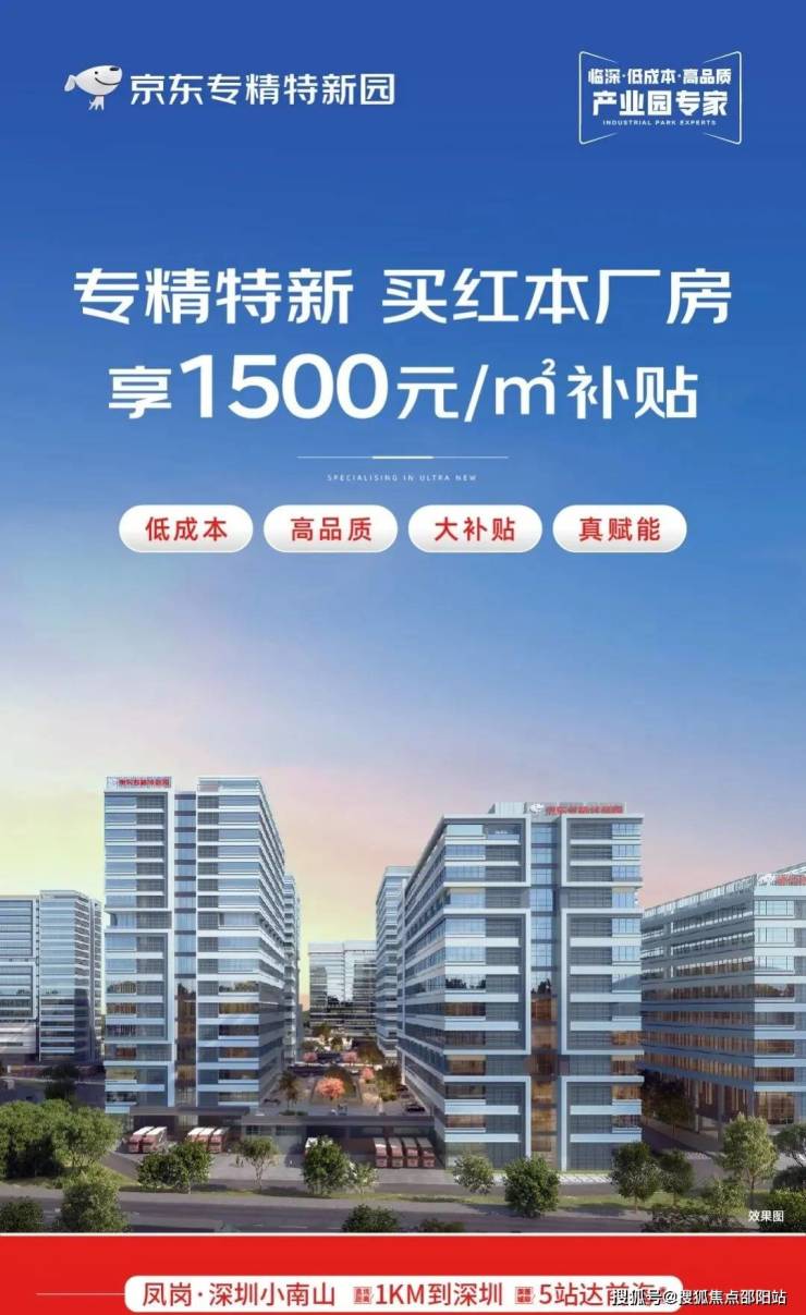 京 东专精特新园,是基于京东智谷打造的“ 专精特新” 主题园区,紧靠京东大道,总 建面约 51万㎡ ,规划 独栋厂房、智造大厦、大湾区国际电子中心 等产品。 通过 京东技术赋能、专享补贴政策、领先的产品设计,全领域成熟的运营 体系,为高速成长的“专精特新”科技企业、“独角兽”企业提供 低成本高品质空间 ,助力企业进阶。