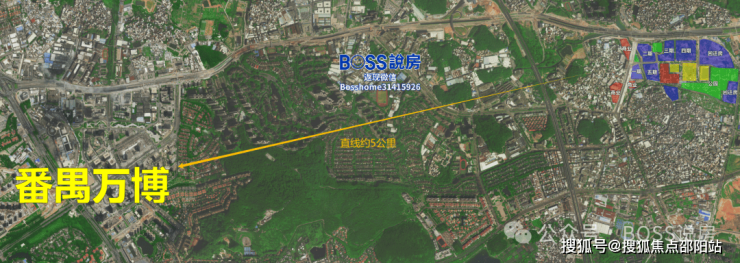 项目距离番禺万博,直线约5公里,自驾15分钟,地铁2个站