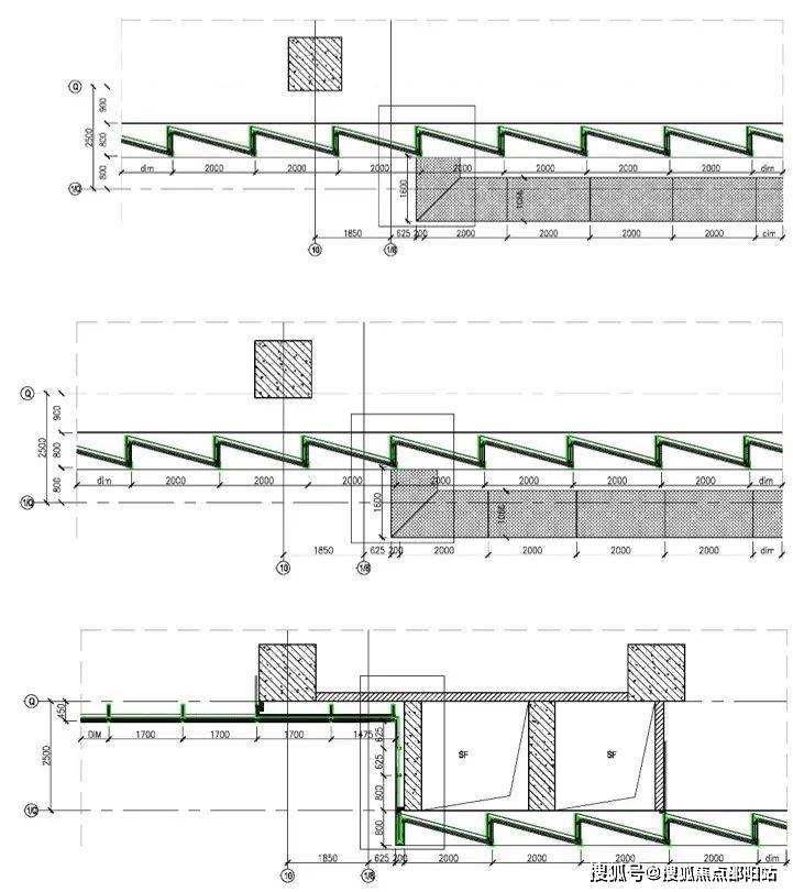 ▲ 酒店裙楼折线玻璃幕墙系统节点图