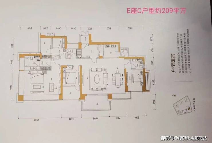 E座:约209-211㎡4房3卫 南北通