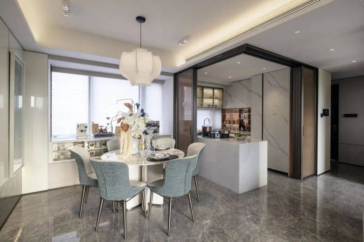 在客厅打造上,项目采用LDKB一体化设计,提前规划陪伴式生活场景,打造成长型家庭空间。