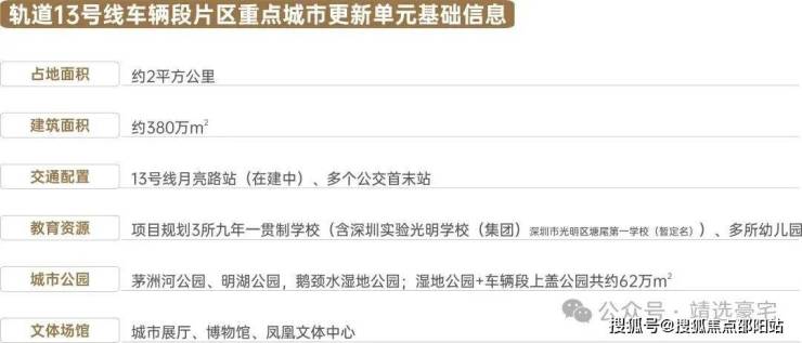 地铁13号线:项目属于地铁上盖物业,且是在被称为黄金科创线的地铁13号线的月亮路站上盖。13号线作为深圳三大快线之一,将光明快速连接南山区及宝安区。因连接光明科学城、留仙洞、科技园及后海总部基地,与广深港科创走廊重叠,因此也被誉为是深圳的黄金科创线。(*在建中,该规划属于片区更新单元范围内。)