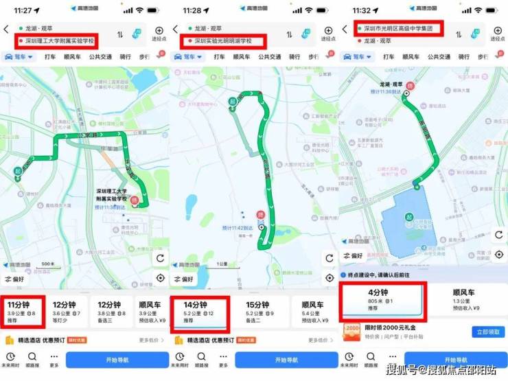 自驾可通过南光高速(2016年起永久免费通行)和龙大高速两条免费高速到达深圳各区,开车1.8公里可上龙大高速(如左图所示),3.7公里上南光高速(如右图所示)