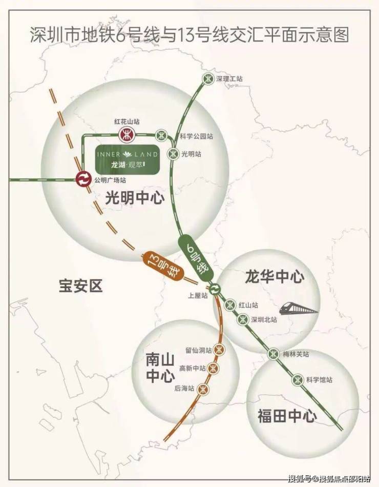 ★步行约300米就是6号线红花山站,一站可达公明广场换乘13号线(在建)。光明中心只此一站拥有双轨交汇。