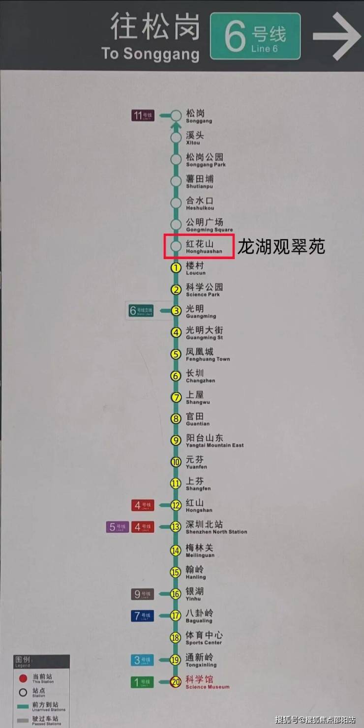 现有的深圳地铁6号线(已通车),我们走路约398米到红花山站,乘坐地铁地铁2站可达科学公园,4站光明大街,5站凤凰城,12站红山,13站深圳北站,14站梅林关,17站八卦岭,18站体育中心,20站福田科学馆;