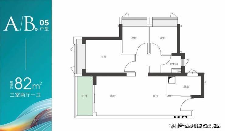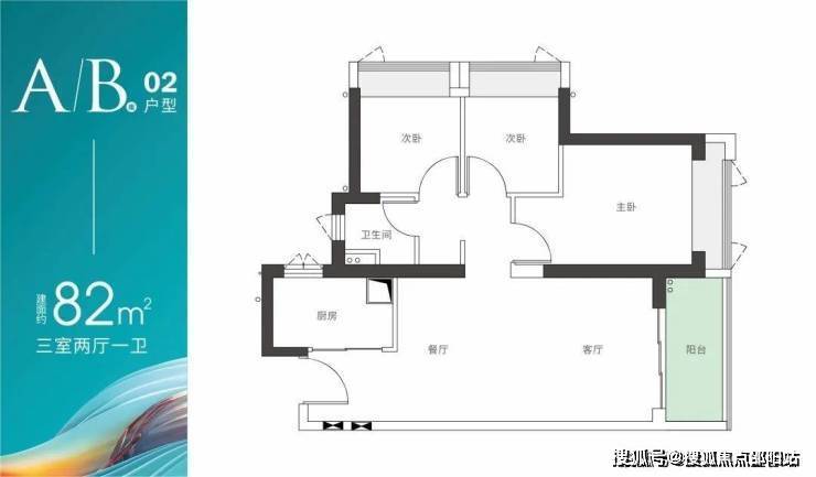 【82-115m²】A/B座02户型-建面约82m² 三房两厅一卫