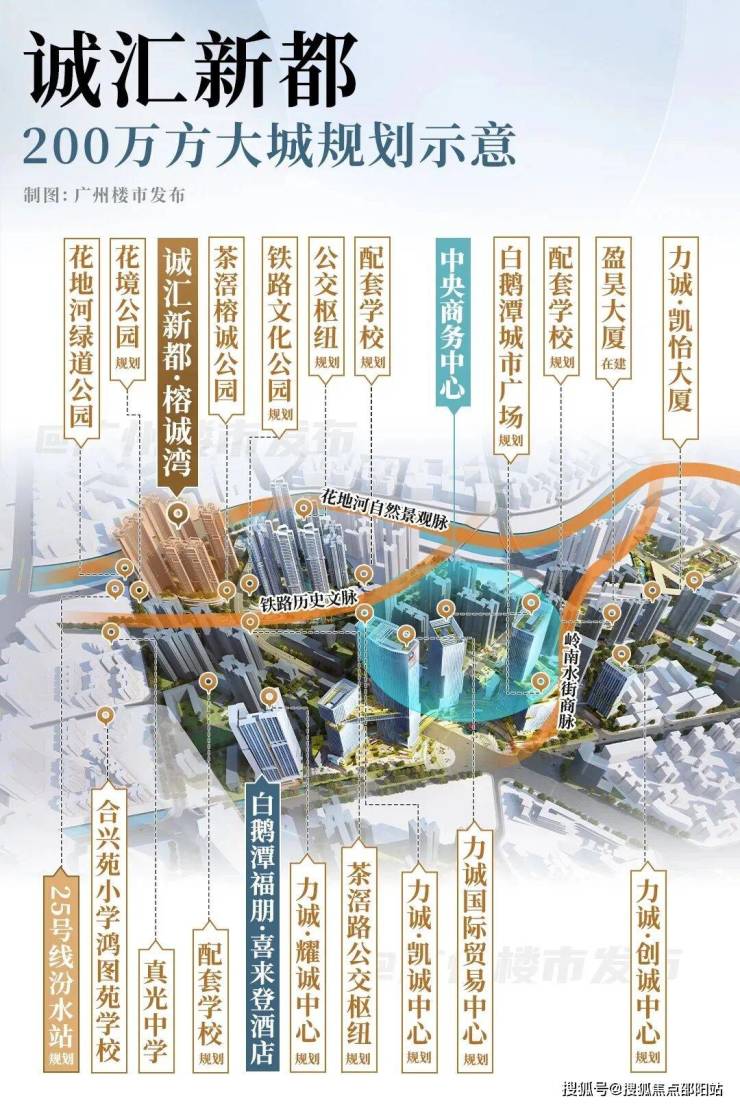 诚汇新都位于白鹅潭商务区核心区,涵盖35个地块,占地约54万㎡