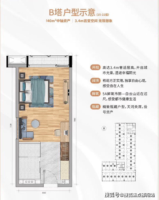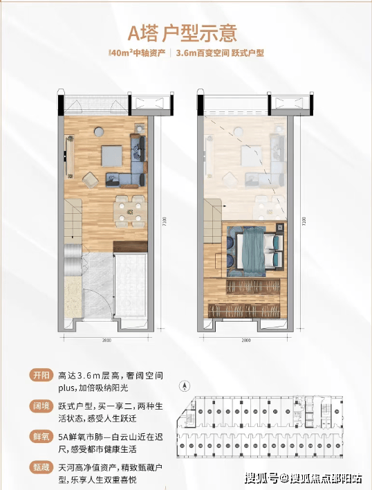 观成大楼:推售建筑面积约为31-57㎡的中轴资产,空间设计合理,包括卧室、厨房、卫生间等功能区域。4.5米高超高空间,采用中空挑高设计,提供墅级享受。