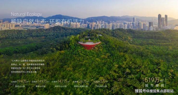 深业上城“缝合城市”创新理念,斥巨资打造两座生态廊桥,步行10分钟直通莲花山、笔架山、中心公园,纵享约4700亩城市绿肺,让城市与自然从容交汇。