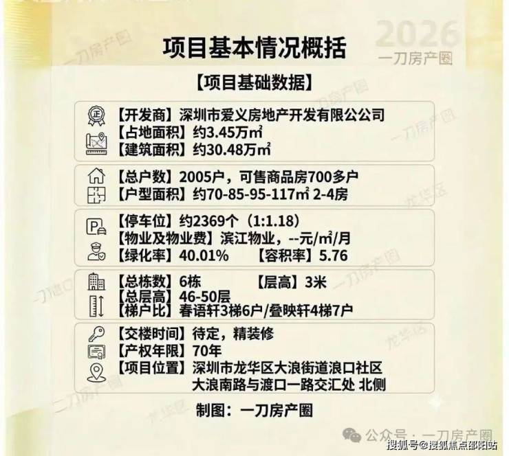 杭州滨江集团本次深圳首作高端豪宅滨江-叠映春语,其地址位于龙华区大浪核心,踞"大浪时尚小镇+后浪新天地"双商圈交汇处,为浪口村旧改标杆项目。项目总建面约30.48万平方米,规划6栋超高层住宅,打造建面约70-117平方米2-4房精装产品,得房率高达95%-98%自带约2万平方米社区商业、9班幼儿园,毗邻九年一贯制虔贞学校,靠近在建地铁25号线华富站,保留客家围屋打造人文社区,预计2028年精装交付,是龙华刚需上选。