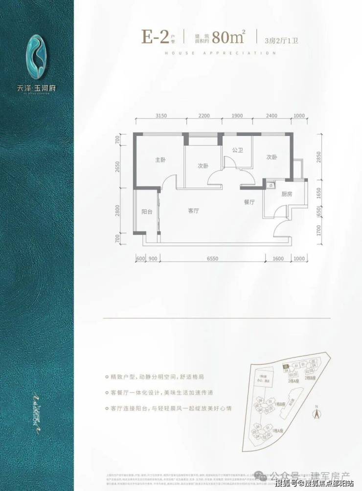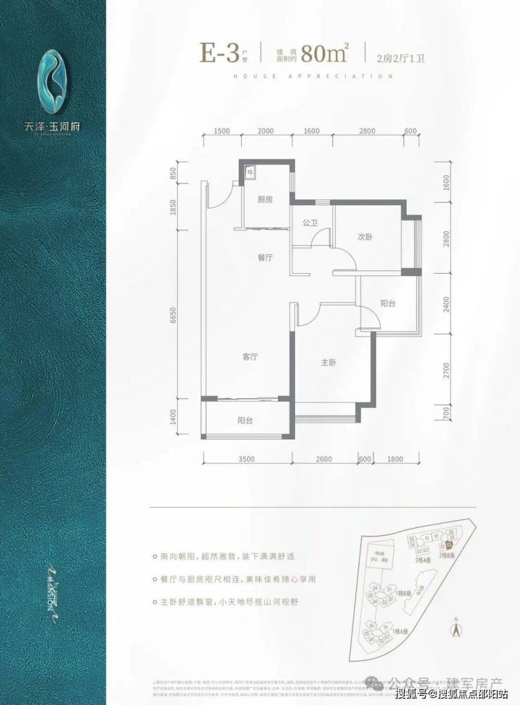 建面约80㎡的户型开间就有约3.5米,格局方正、动静分离、空间开阔、采光充足。基本上达到了市面上90㎡以上户型的尺度。