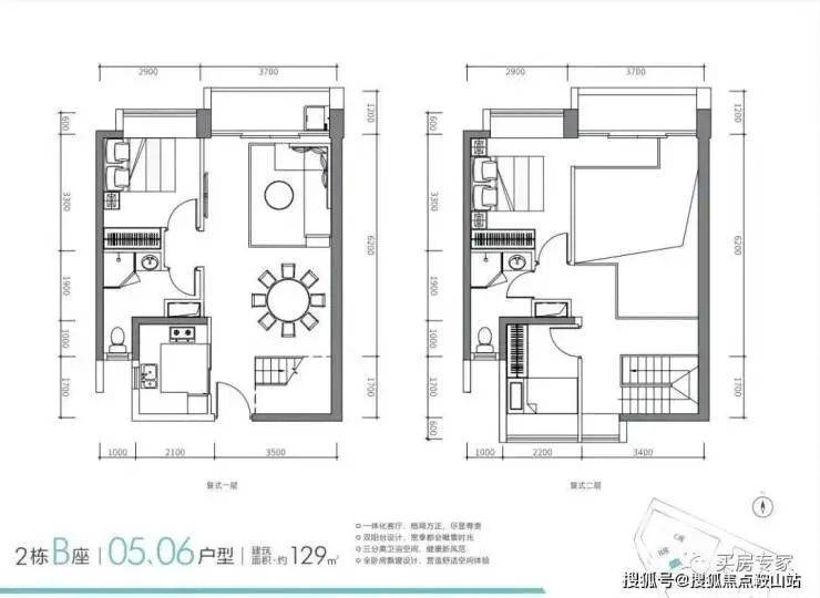 复式产品集中在2栋B座,主要是有127到143㎡的四房两卫,但是二层的使用率一般。目前市面上复式产品是比较少见的。