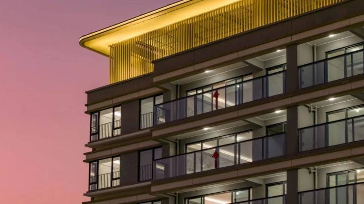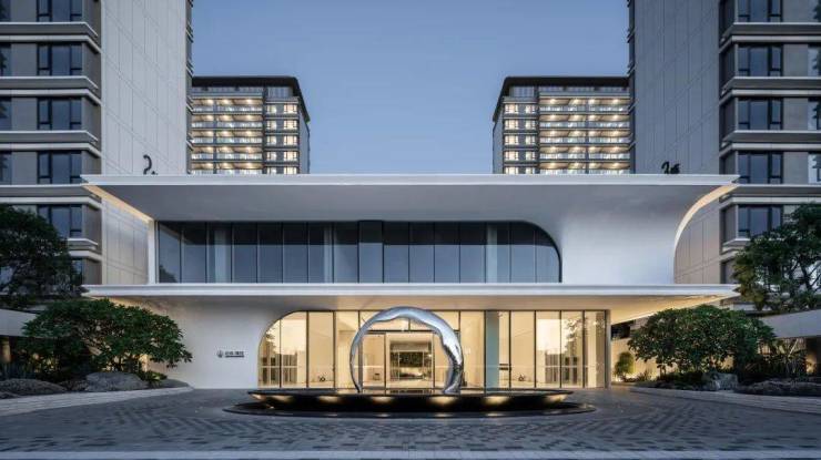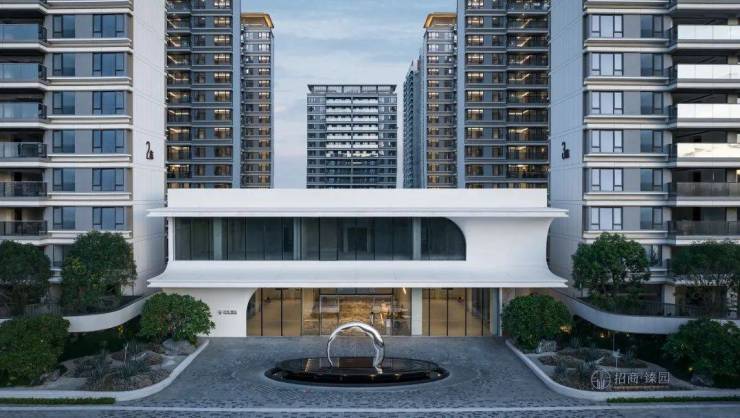 三亚招商·臻园设计,通过山海园三重元素抽取,将其符号化成建筑形态。建筑外立面采用全景隐框设计,low-E玻璃幕墙以香槟金线条贯穿布局,以毫米级尺度雕刻建筑细节。大量使用弧线和曲面设计,玻璃、石材、金属线条、圆角弧线的流畅贯通,使招商臻园具备一种行云流水,无垠漫游的建筑情感。