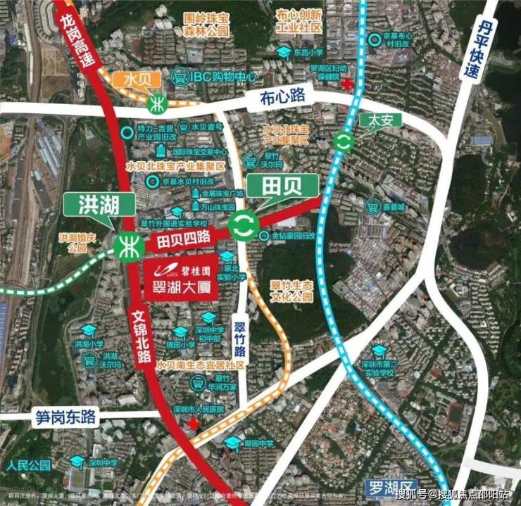 地理位置:水贝商圈;深圳市罗湖区翠竹街道田贝四路与文锦北路交汇处;距7号线洪湖站约89米,距3号线/7号线的换乘站田贝站约380米。