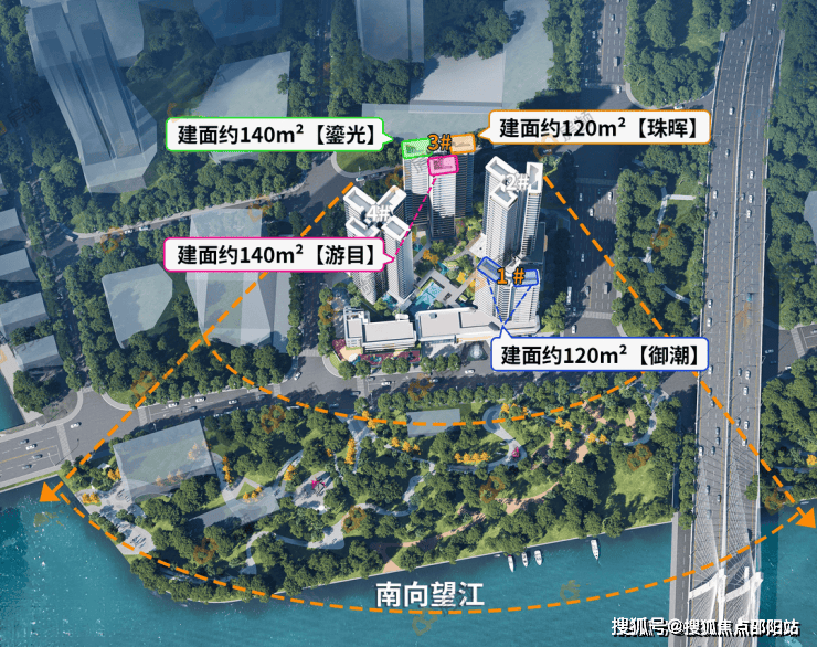 该栋为25层高,两梯三户设计,只有两个面积段,120㎡和140㎡,户型做得不错,在景观展现上用了功,极大程度去放大观江面,比方说超宽阳台、L型主卧转角飘窗、客厅预留观景飘窗等等,主打改善户型,2025年9月整体交房