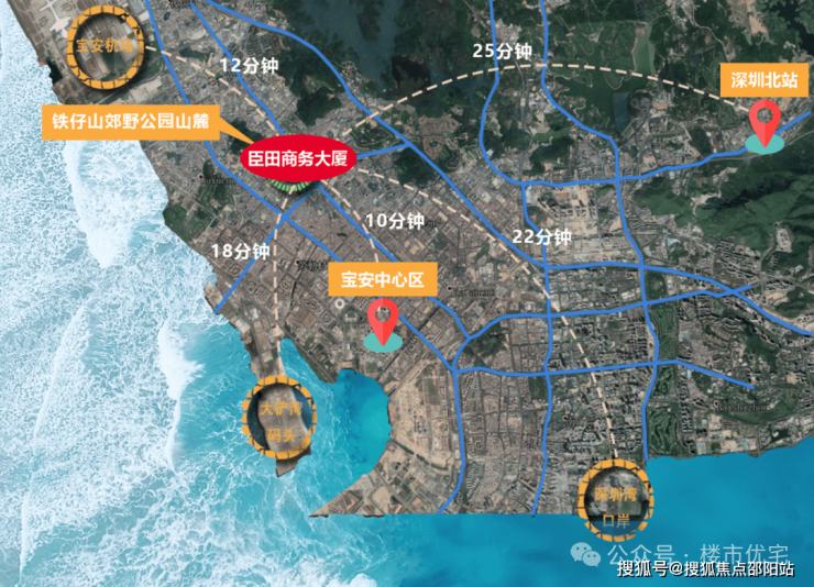 臣田商务大厦距地铁12号线宝田一路站约800米,6站即可到达宝安中心市政机构。项目邻在建的地铁20号线,预计2028年通车,未来可快速通达宝安、南山、福田中心区。