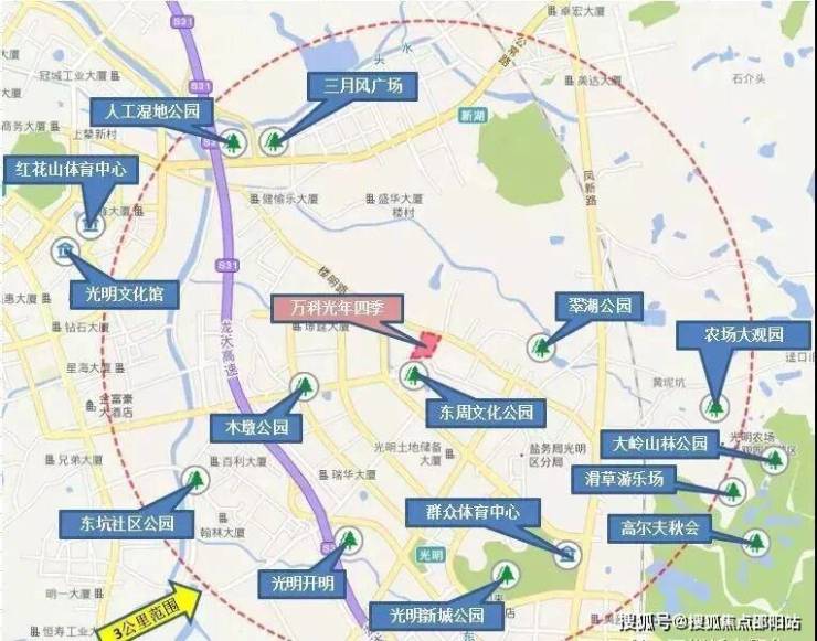 万科·光年四季位于深圳光明中心区光明大街以南,东周公园以北。