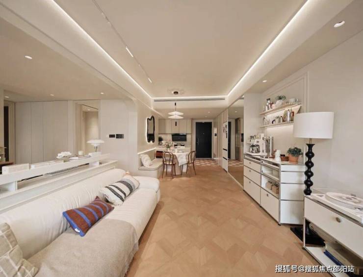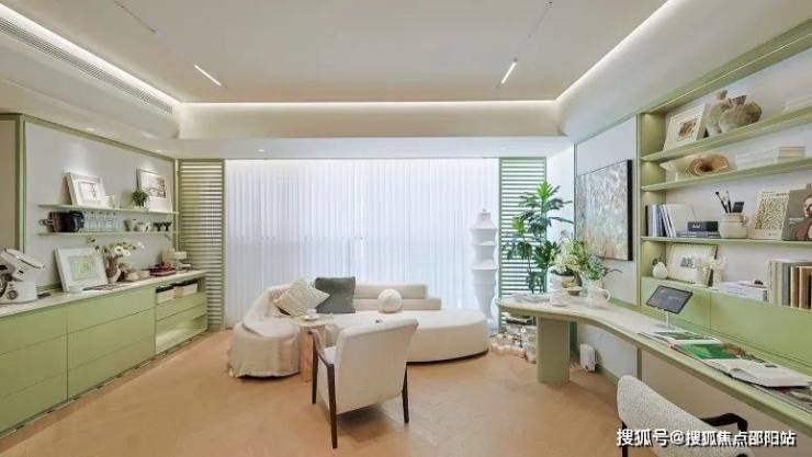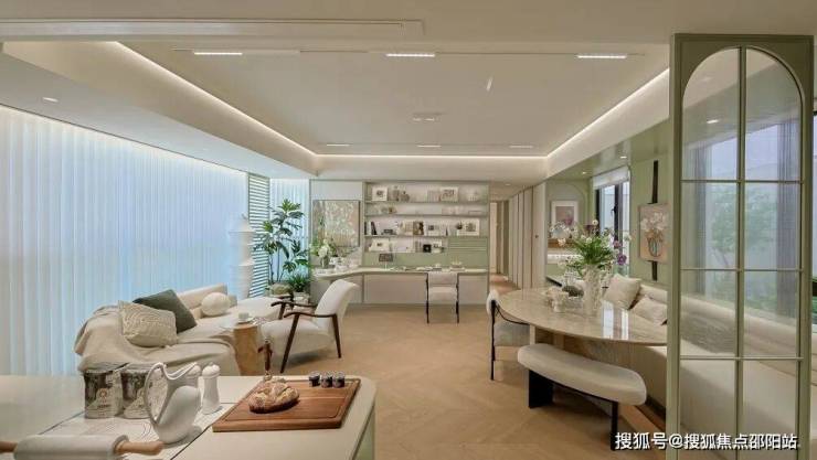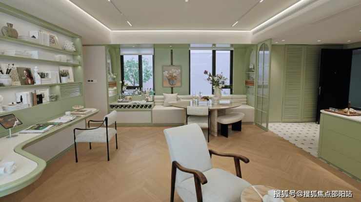 走进约89㎡E户型样板间,高级淡雅的青绿作为主色调贯穿其间,加上洁白灯光与墙面恰到好处的渲染,让整个空间在大气中不乏优雅。
