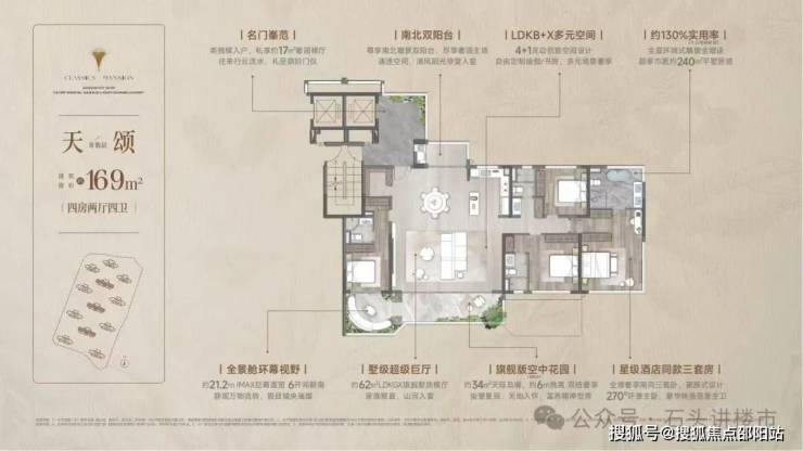 四代洋房·奢享写意人生 |双入户大堂、一梯一户,稀缺130%实用率(不含电梯厅),6面朝南,270°环幕采光,定制约6m错层空中浮岛,奢享墅质生活