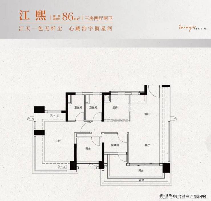 ①建面约90㎡:三房两厅两卫设计,南向观景大阳台,全屋动静分离,主卧带270°飘窗
