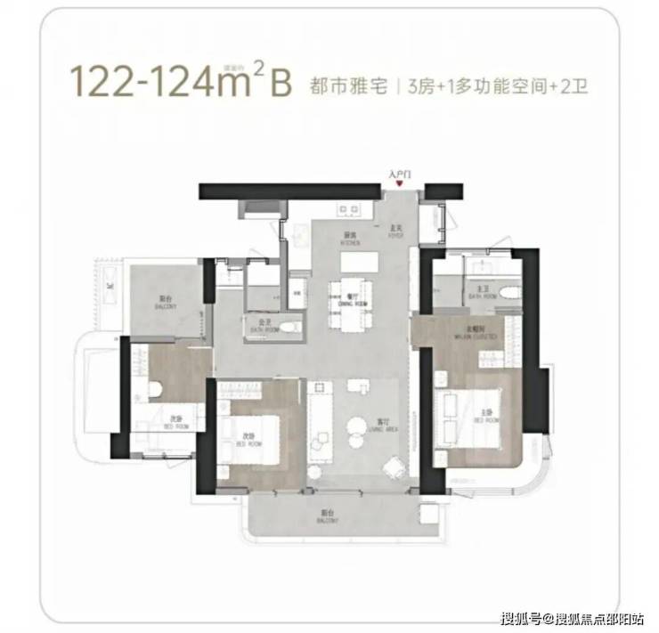122-124平方米3+1房是T5栋的明星户型,拥有多种设计:竖厅户型西南朝向,直面红树林湿地,配备约6.7米双开间阳台;双龙抱珠户型为西北朝向,采用双主卧套房设计;横厅户型东西通透,拥有约6.2米横厅与270°转角阳台,中西双厨设计。